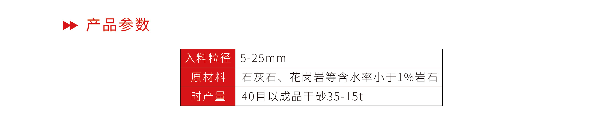 原材料 石灰石、花岗岩等含水率小于1%岩石