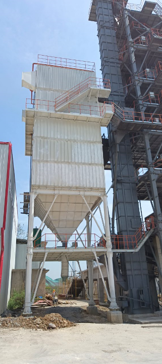 高效布袋式除尘器,采用离线清灰脉冲除尘技术,将制砂过程中产生的粉尘收集到石粉仓中,除尘效率高达99%